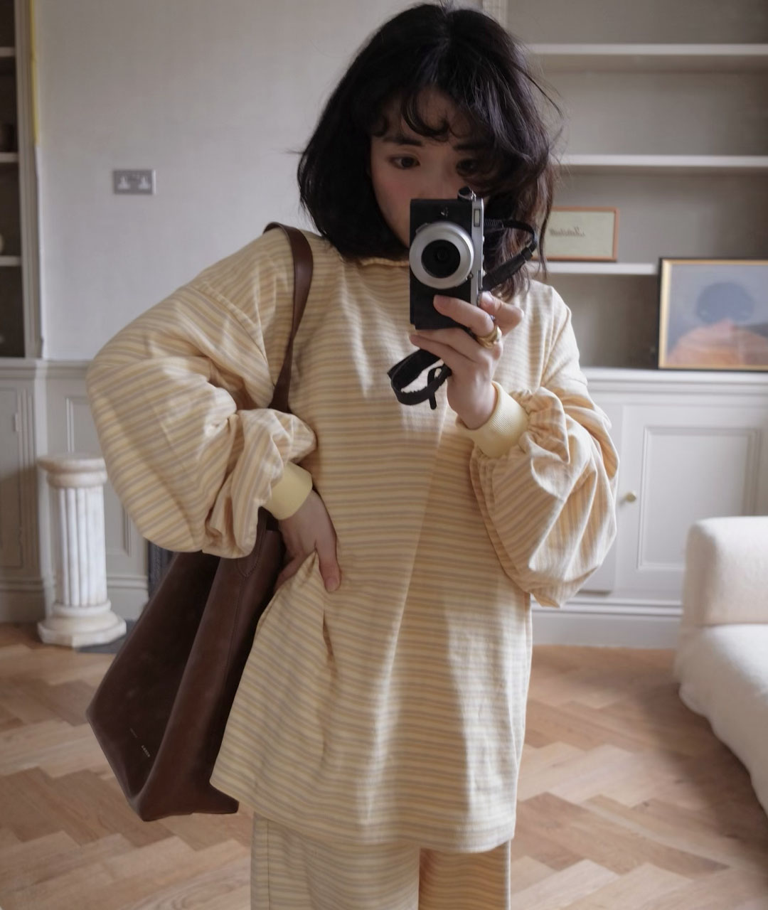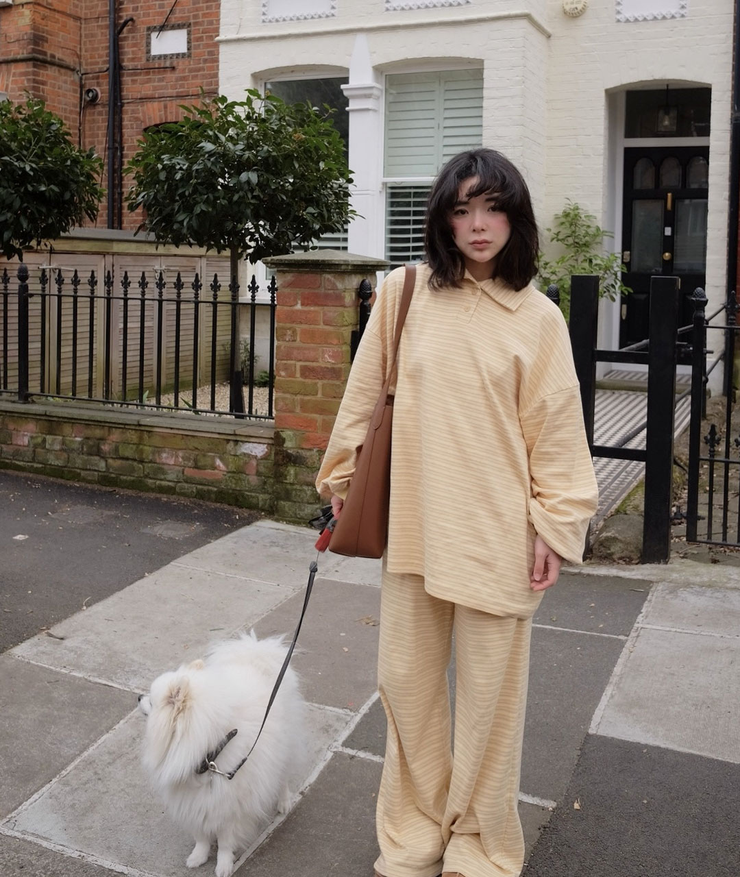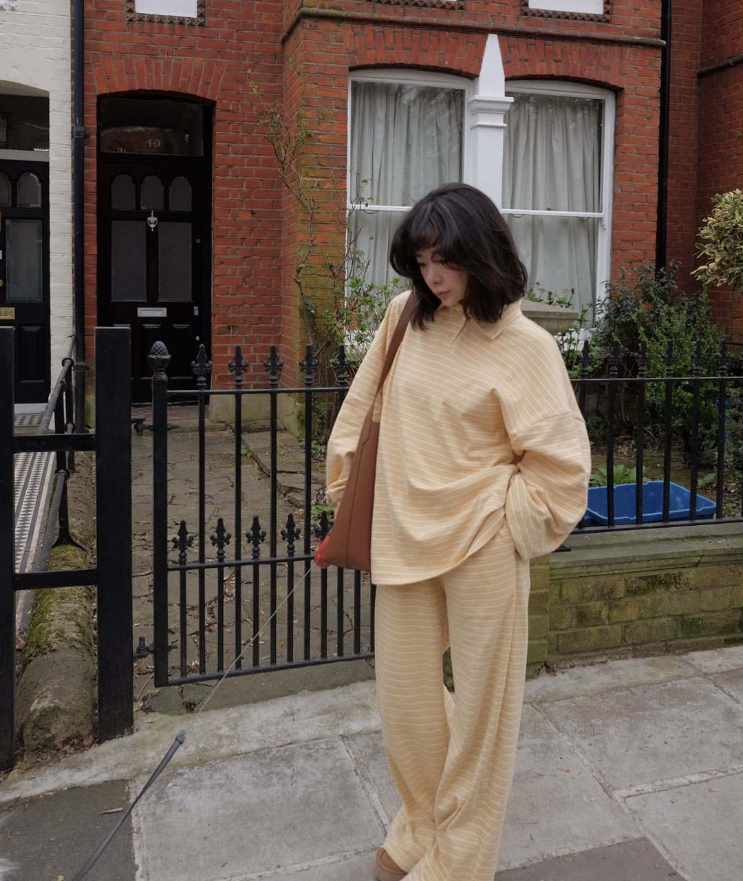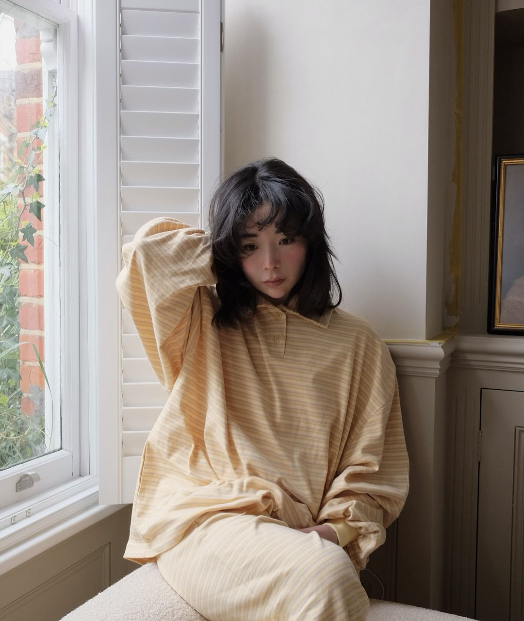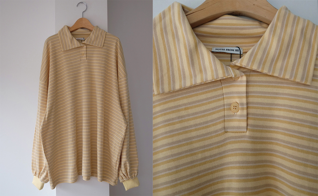This oversized polo tee is made from 100% organic cotton. With clean, solid-colored ribbed sleeves and a butter-colored stripe, offering a classic yet vintage vibe.v