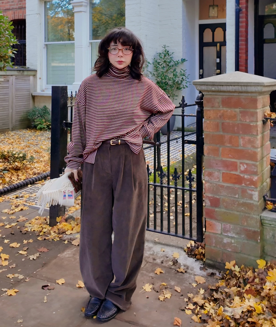 Features a relaxed oversized fit, soft funnel neck, and vintage.stripe detail for easy layering.