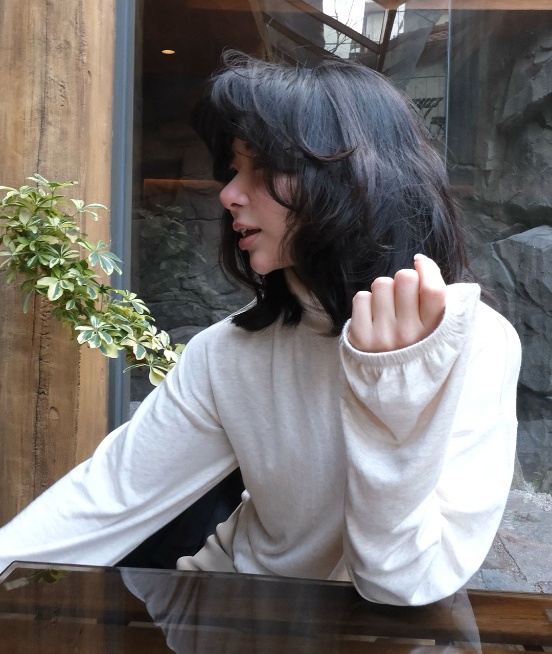 Relaxing Ivory Melange Funnel neck TopSold out