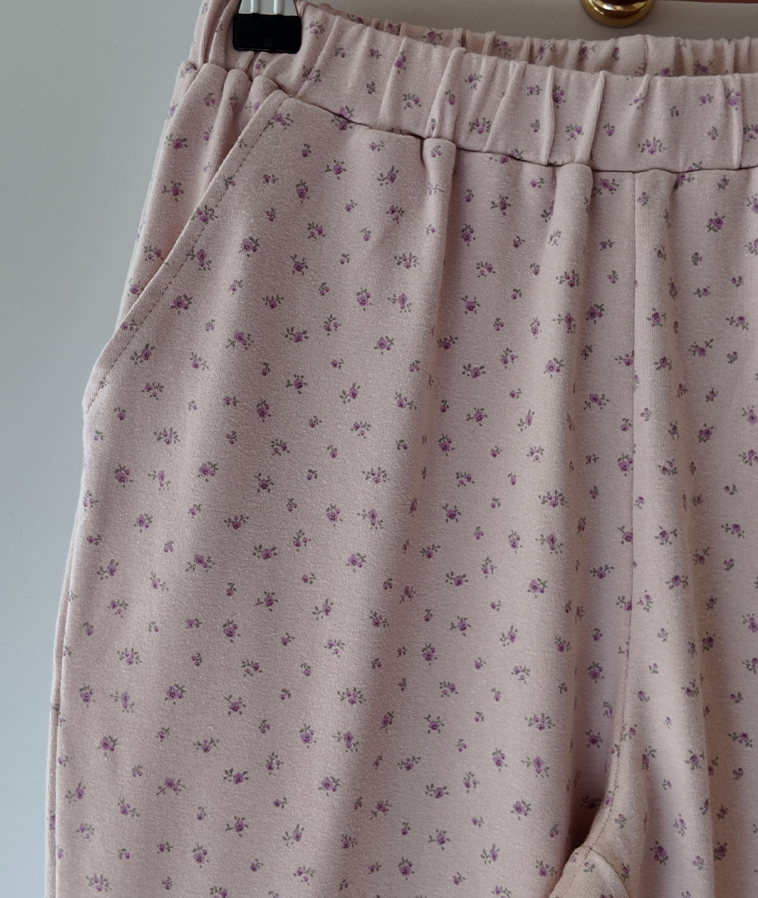 Our popular Signature floral lounge pants are crafted from soft pale pink cotton with a subtle violet floral all-over print.