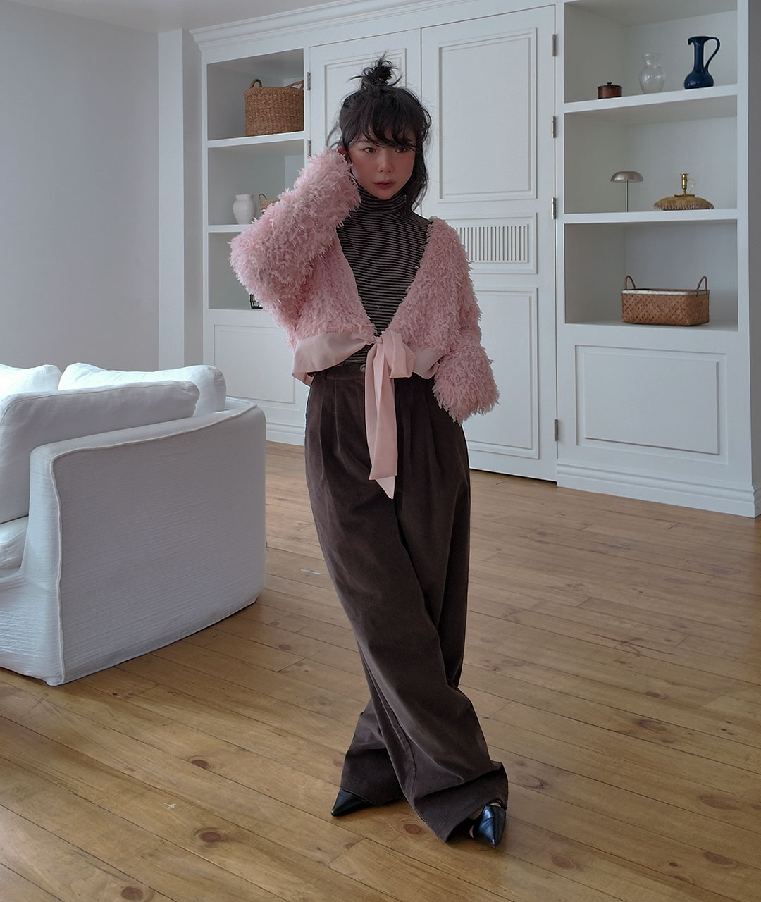The rich deep brown tone complements the fall–winter palette, while the textured fabric adds warmth and softness.